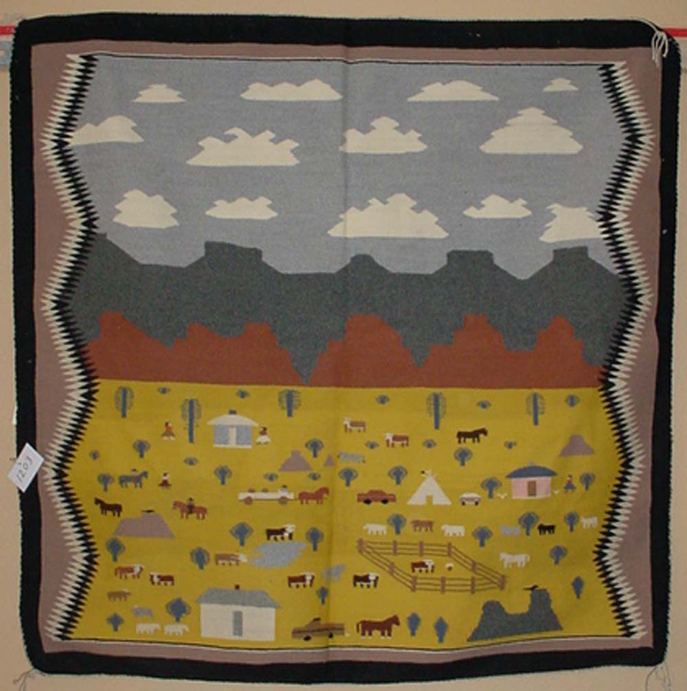 The Navajo Yei rugs come from the Shiprock region of the Navajo reservation. That region extends from Shiprock southwest to Rattlesnake and Redrock. After the turn of the twentieth century, Will Evans of Shiprock Trading Company asked the weavers of the region to portray Yeis, the supernatural beings who communicate between the Navajo people and their gods into their weavings. The first Yei rugs were woven as taboo, because the figures were taken from sacred sand paintings from healing ceremonies.